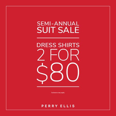 Visit us in-store and enjoy 50% off select suits and 2 dress shirts for just $80.