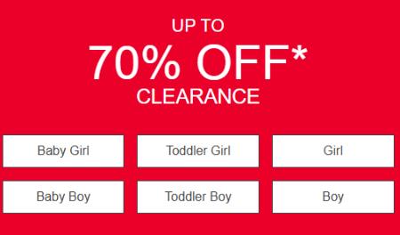 Up to 70% Off Clearance 7 More: Savings based on MSRP or original ticketed price. Excludes Little Planet®, Skip Hop®, Otter Avenue™, PurelySoft™, Carter’s Bedtime™, swimwear, select new arrivals, select licensed styles, select outerwear, sneak peek snd doorbusters. Other exclusions may apply.