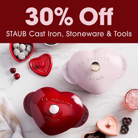 30% off STAUB Cast Iron, Stoneware & Tools offer valid January 20-February 14, 2026. Offer may not be combined with any other coupons, discounts, or offers. Offer not valid on prior purchases, special orders, gift cards or taxes. Promotion only available in our ZWILLING Retail and Factory Stores located in the United States. Some exclusions may apply. See store associate for details.