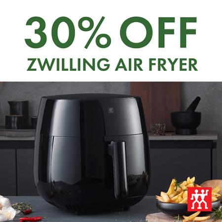 30% off ZWILLING Air Fryers offer valid January 26-February 8, 2026. Offer may not be combined with any other coupons, discounts, or offers. Offer not valid on prior purchases, special orders, gift cards or taxes. Promotion only available in our ZWILLING Retail and Factory Stores located in the United States. Some exclusions may apply. See store associate for details.